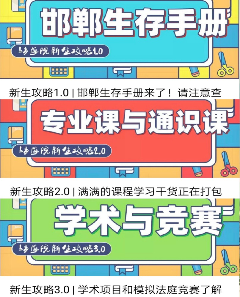 除了上述准备工作,学工办在江湾校区校园、法学院行政楼和爱久公寓挂放了共36条横幅,迎新当天还会请捏糖人的民俗表演家到现场活跃气氛。同时,迎新的日常宣传工作也按时的发放到公众号等网络平台,力求让新生在报到之前便体会到学院对他们浓厚的关爱之情。